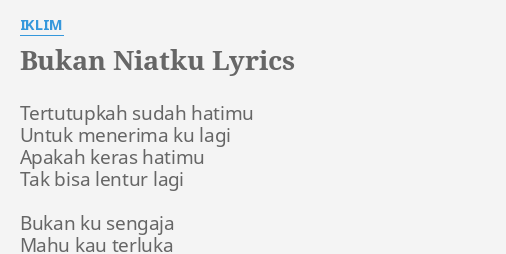 Am kini kau pinta tuk kembali. 0 View save list. Lagu Bukan Niatku Dinyanyikan Oleh Kumpulan IklimTertutupkah sudah hatimuUntuk menerima ku lagiApakah keras hatimuTak bisa lentur lagiBukan ku sengajaMahu ka.