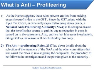 Profiteering is defined as making an unreasonably high profit which is measured by a mechanism prescribed. LIST OF TOPICS COVERED.